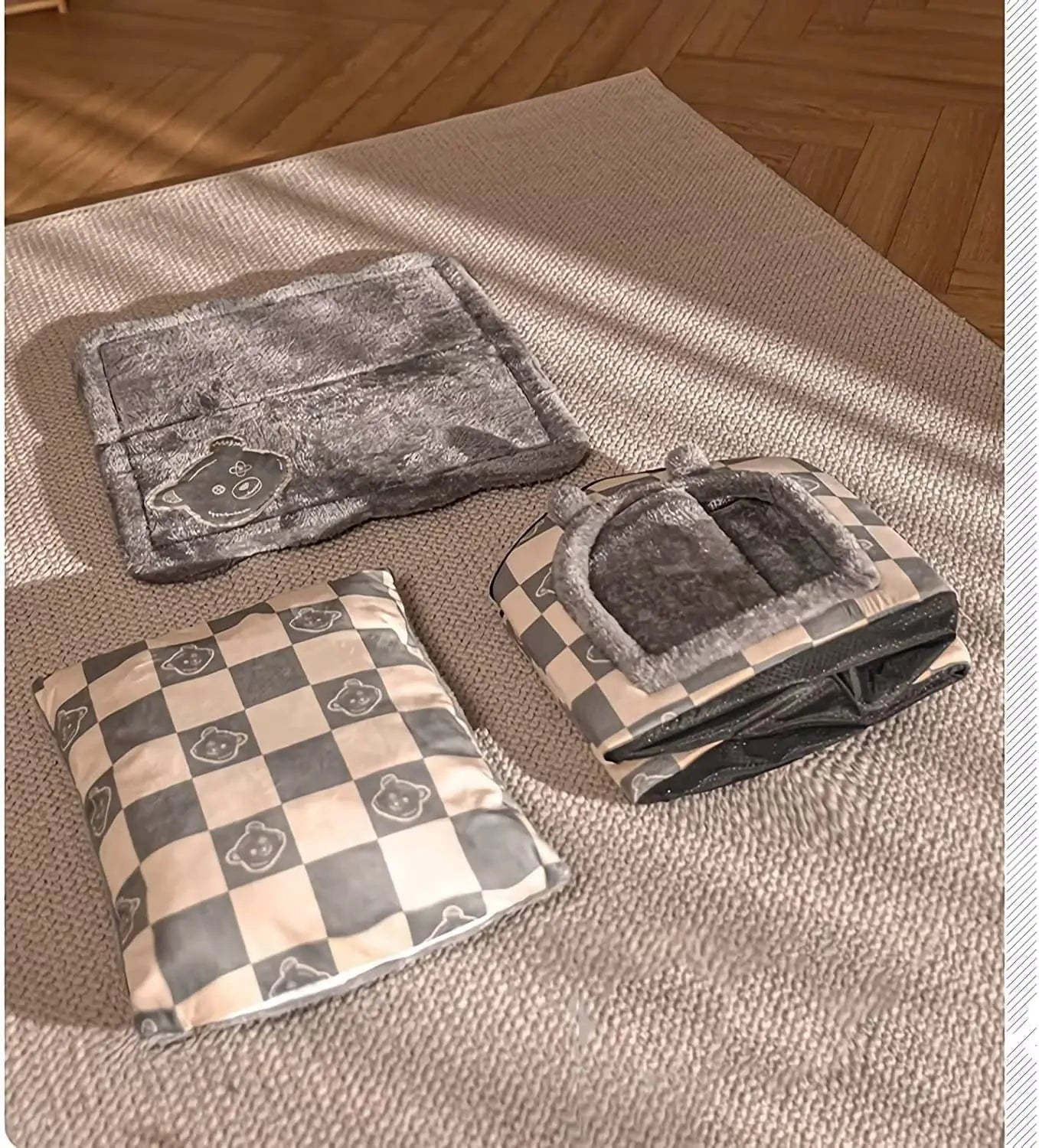 Introducing the Foldable Pet House – where comfort meets convenience for your furry companion! Crafted from premium velvet and PP cotton, this pet haven ensures durability and safety while offering a cozy retreat for your beloved pet. Its innovative design provides a snug space for your furry friend to curl up and unwind, promising hours of restful sleep. Setting up this pet house is a breeze, taking just three seconds, and its foldable feature allows for easy storage when not in use. With an anti-slip bottom, you can rest assured that your pet will stay securely in place on any surface. The thick PP cotton filling offers optimal support for your pet's limbs, joints, and muscles, promoting better sleep quality and overall well-being. Give your pet the comfort and security they deserve with the Foldable Pet House – because every pet deserves a cozy home of their own.